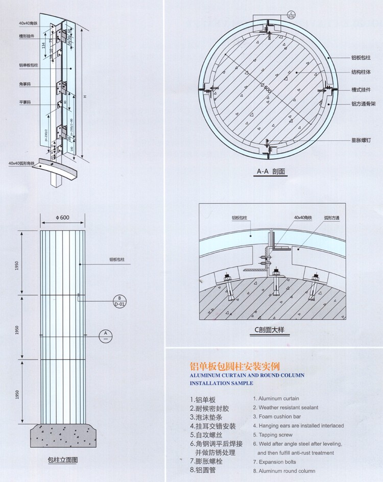 圓形無縫包柱鋁單板特點: