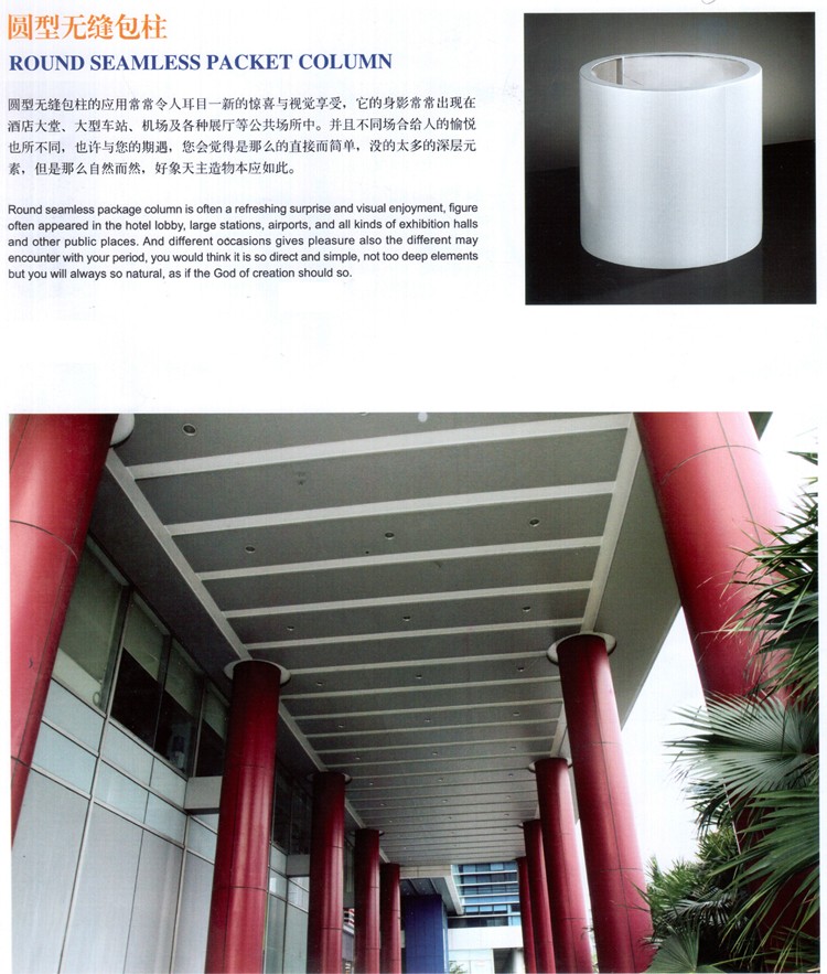 圓形無縫包柱常?,F在大堂、大車、及展廳等公共場所中。并且不同給人愉悅也所不同,也許與您期遇,您會覺得是那么直接而簡單,沒有太多深層元素,但總是那么自然而然,好象天主造物本如此。