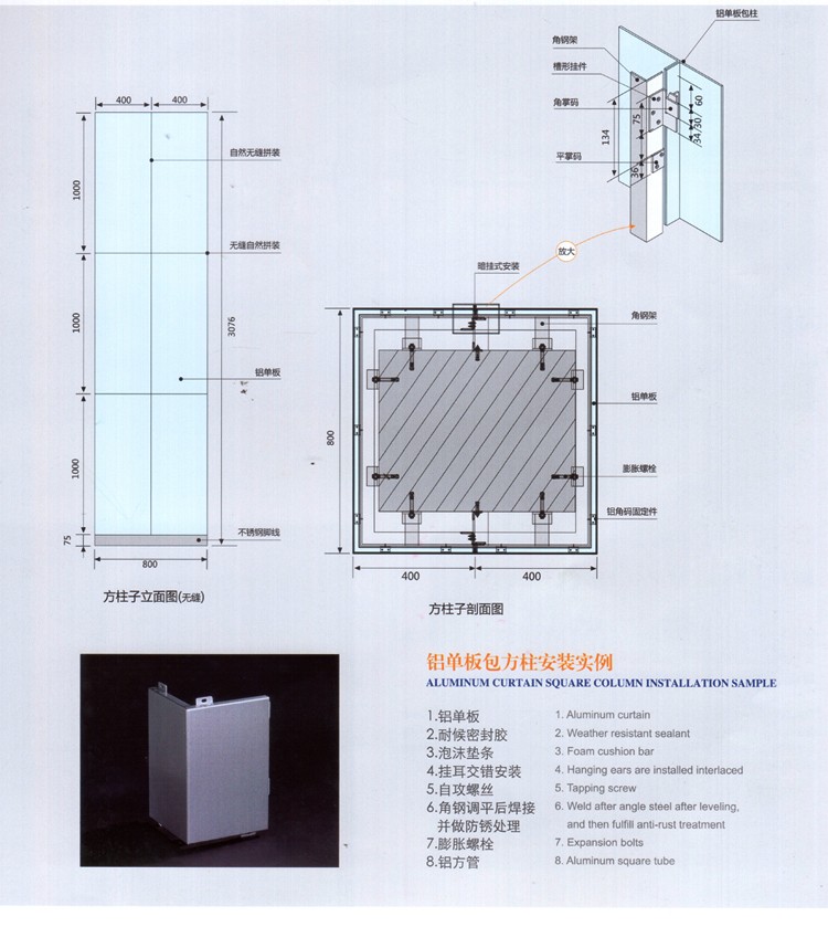 方形無縫包柱鋁單板特點: